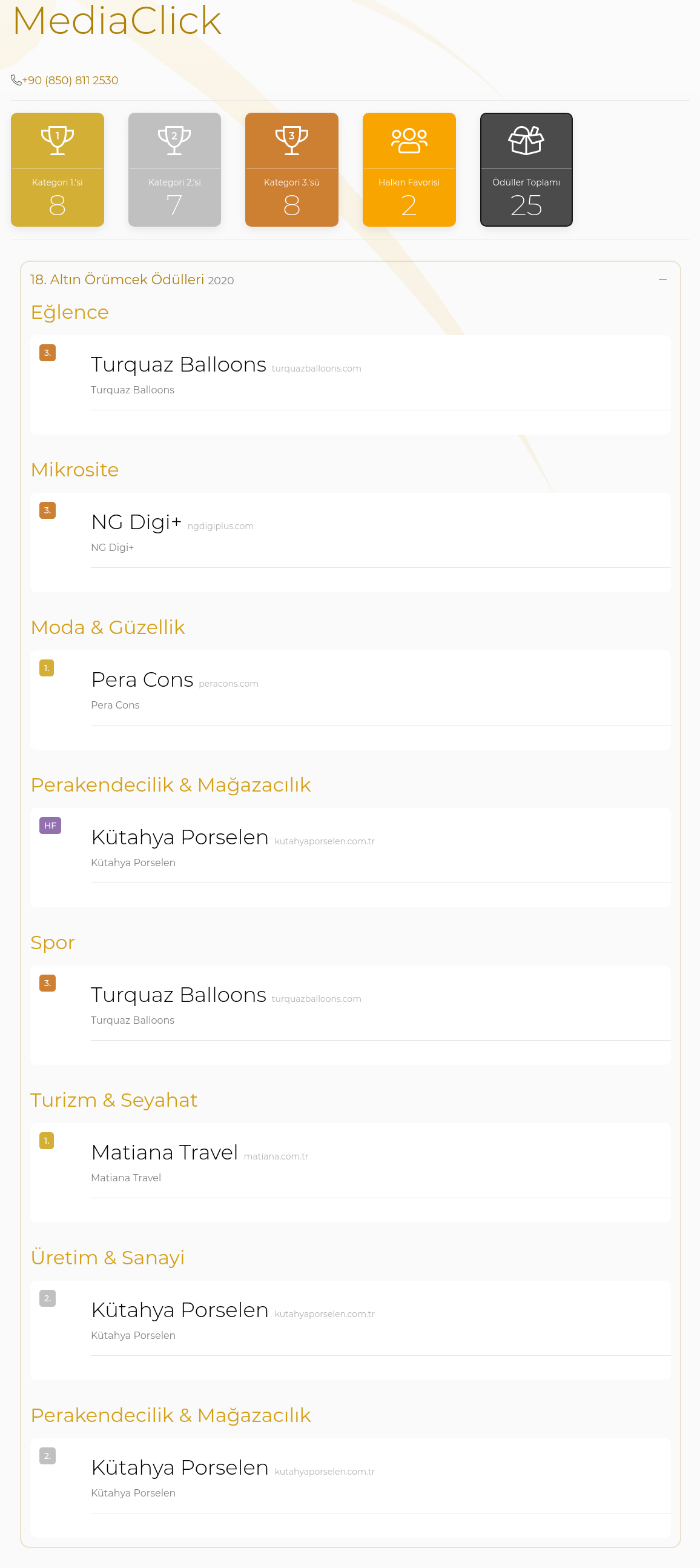 MediaClick, Türkiye’nin en iyi internet ve web uygulamalarının belirlendiği Altın Örümcek Ödülleri’nde 7 farklı kategoride toplamda 8 ödül aldı.